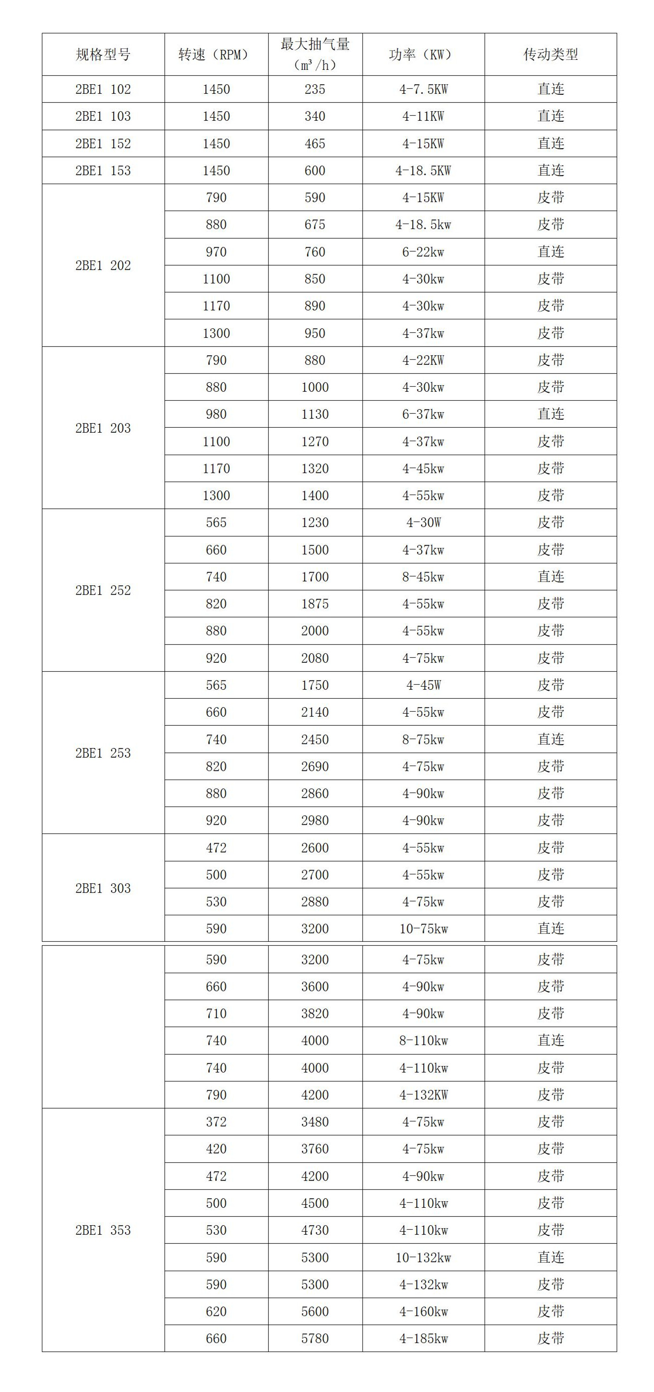 2BE1系列液環真空泵技術參數:
