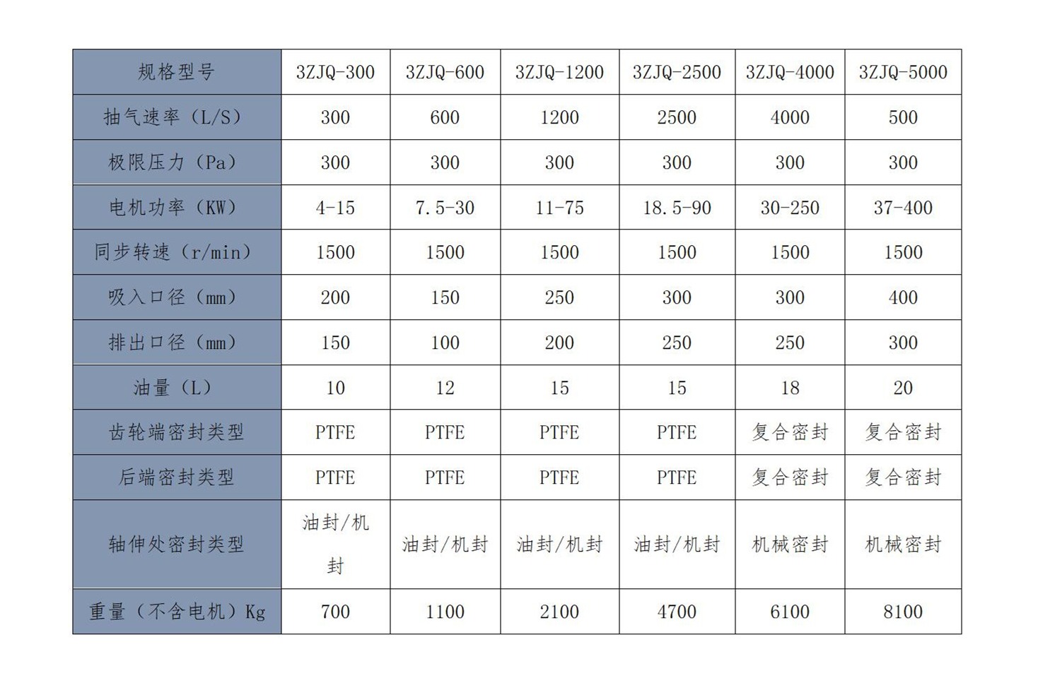 三級氣冷羅茨泵技術參數